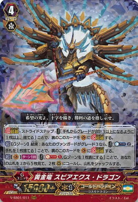 「黄金竜スピアエクス・ドラゴン」は自分のヴァンガードがグレード3であれば超越フェイズ関係なしに超越できるので、相手のヴァンガードがグレード1の状態でも超越することができるようになります。