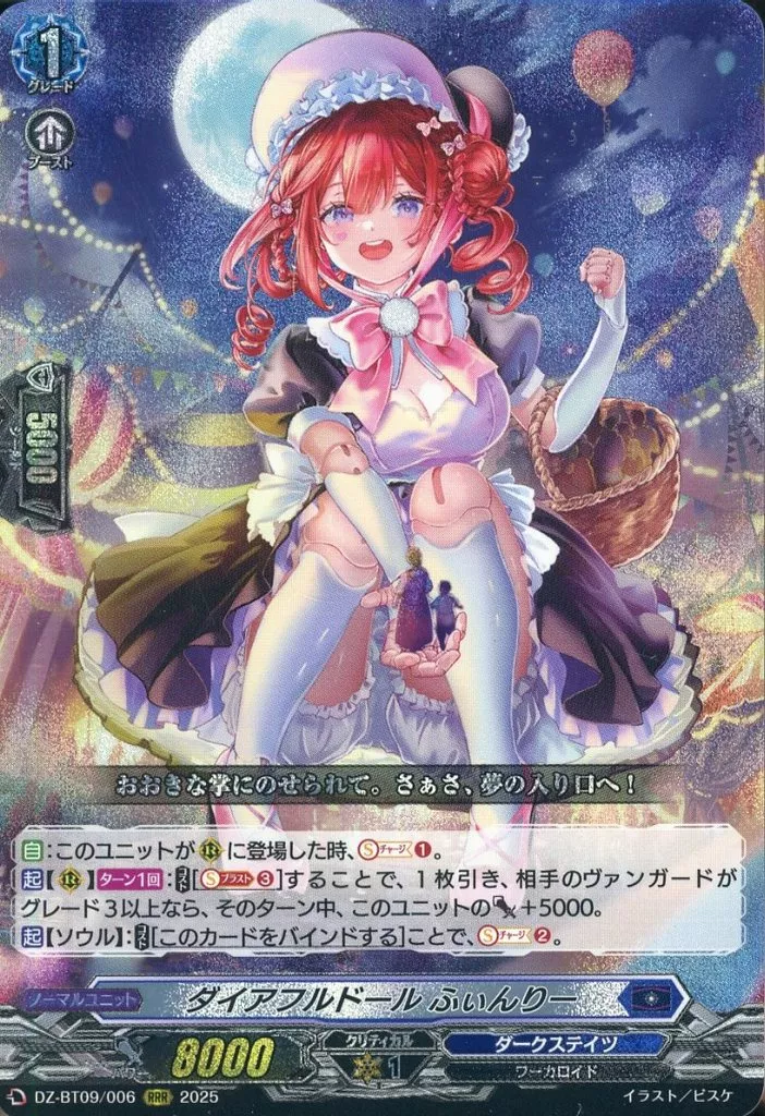 メインヴァンガード。相手のリアガードかガーディアンの退却時にエネルギーチャージ1する効果と、バトル終了時にグランドグマへとライドする効果を持っています。