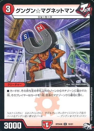 相手にしかかからないので扱いやすい。スレイヤー持ってるからマッハファイターで除去されても損しないし、G・ストライク持ちで受け札にもなります。