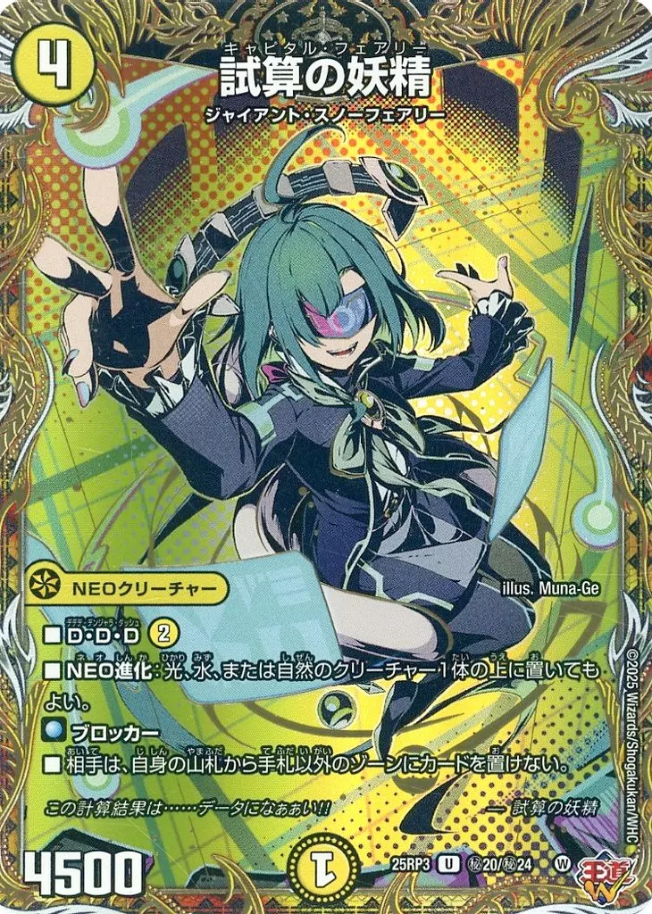 「試算の妖精」はNEOクリーチャーなので、御代紅海で耐性を与えることができます。