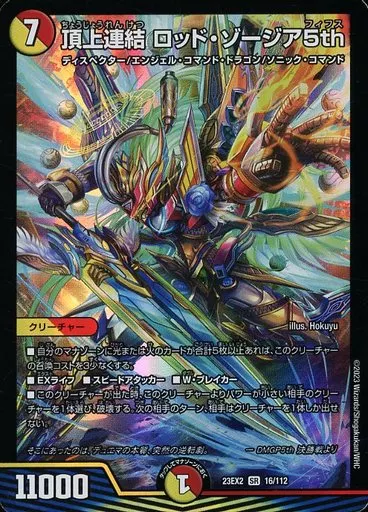 ファイナル革命:このクリーチャーが「革命チェンジ」によって出た時、そのターン中に他の「ファイナル革命」をまだ使っていなければ、自分の山札の上から2枚を墓地に置く。その後、コスト7以下の多色クリーチャーを1体、自分の墓地から出す。