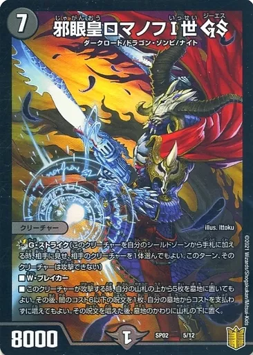 今年のデュエキングパックに収録される「紅き団長 ドギラゴン悪」。ロマノフサインにめちゃめちゃ良さそう。