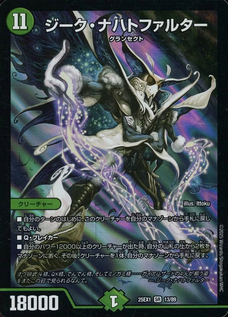 他より速く動いて勝ち切るっていうのはコスト軽減系のパートナーにありがち。「ボルシャック・ドリーム・ドラゴン」とか「鬼ヶ覇覇覇ジャオウガ」「ウィリデ・ゴル・ゲルス」が代表的でしょう。