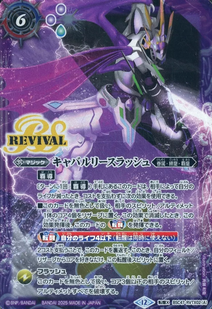 注意点は破壊するスピリットは相手が選ぶこと。装甲持ちが単体でいる時は良いんですが、複数並んでる時は狙ったスピリットを除去できないですね。
