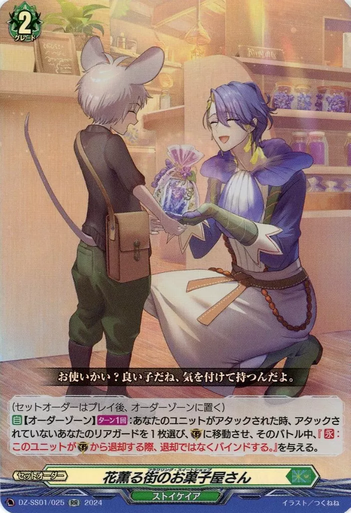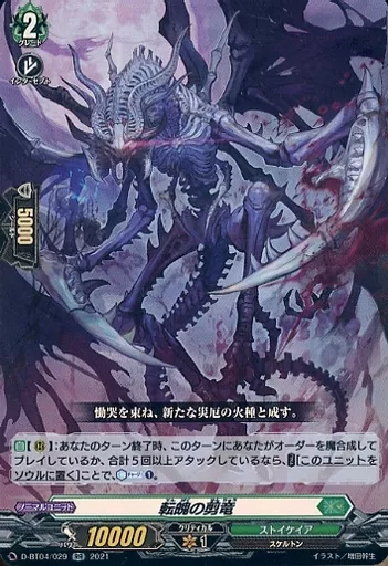 専用オーダー。ソウルブラスト1とリアガード1体の退却で、ドロップから2体呼び出してヴァンガードのパワー+5000します。